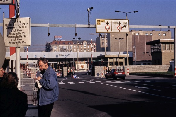 Blick auf den alliierten Grenzübergang "Checkpoint Charlie" in der Friedrichstraße
