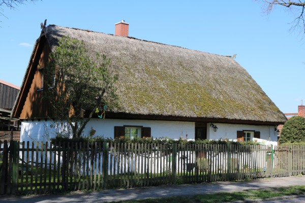 Schäferhütte, ein strohgedecktes Kossätenhaus. Ehemals Hirtenhaus, wurde als Armenhaus genutzt.