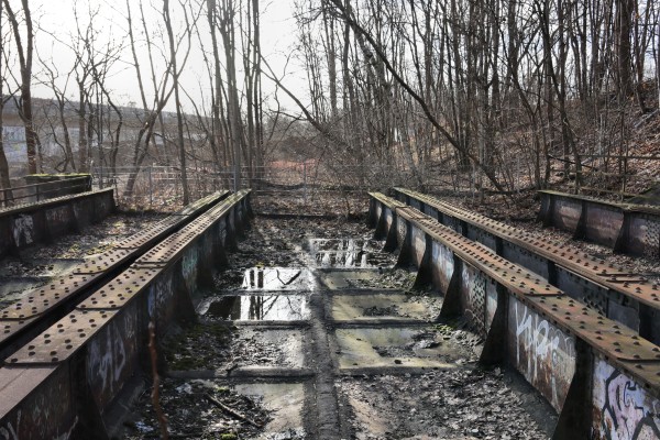 Ehemalige Bahnbrücken über dem Prellerweg, im Süden des Natur-Parks Schöneberger Südgelände