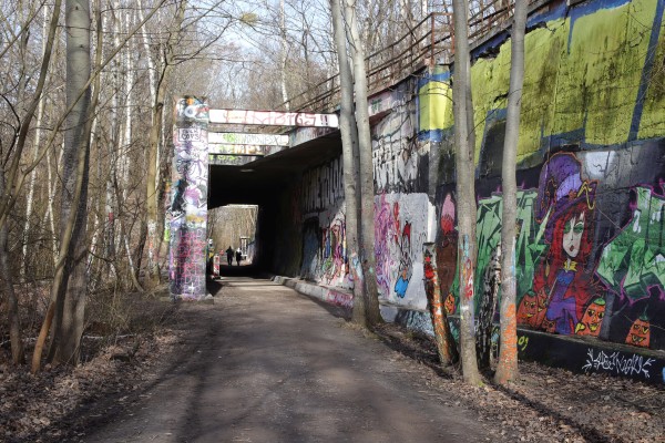 Das nördliche Bahnviadukt im Natur-Park Schöneberger Südgelände, südlicher Zugang, |