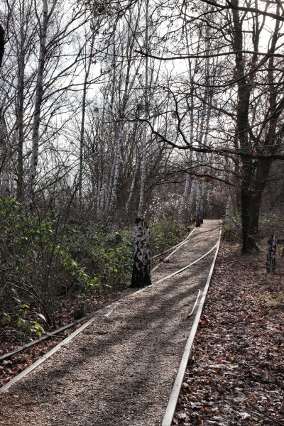 Blick über Gleisweg (Waldweg) nach Süden im Natur-Park Schöneberger Südgelände auf den ehemaligen Ablaufberg