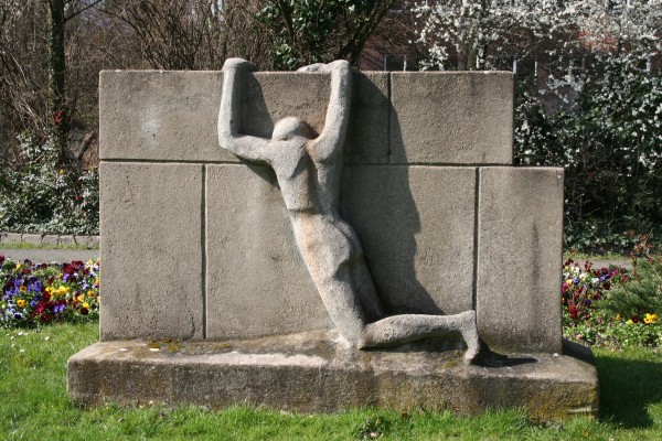 Skulptur "Leid an der Mauer" von Dieter Popielaty (1965) auf der Grünanlage an der Schloßstraße gegenüber dem Steglitzer Kreisel