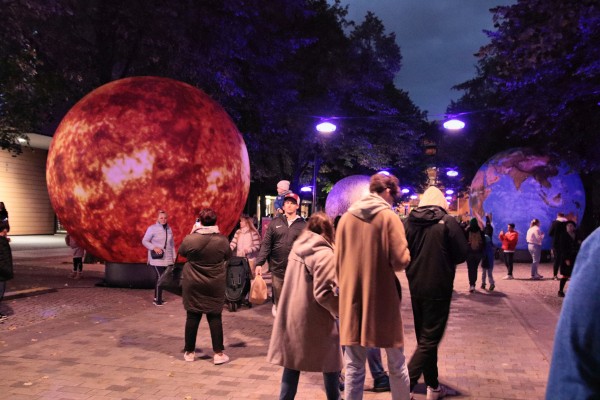 Alte Potsdamer Straße - Installation Luminary, eine Darstellung von Sonne, Erde, Mond und Mars