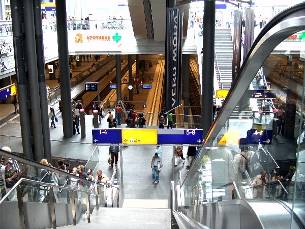 Bahnhofshalle, Blick ins Untergeschoß zum Tiefbahnhof Bau ab 1995, Eröffnung zur Fußball-WM 2006, vom Architekten Meinhard von Gerkahn