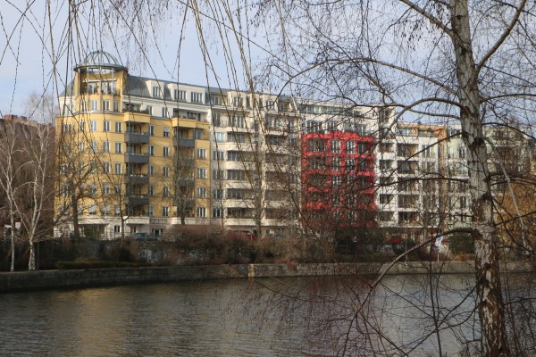 Blick vom Spreeuferweg über die Spree zur Bebauung am Bundesratufer