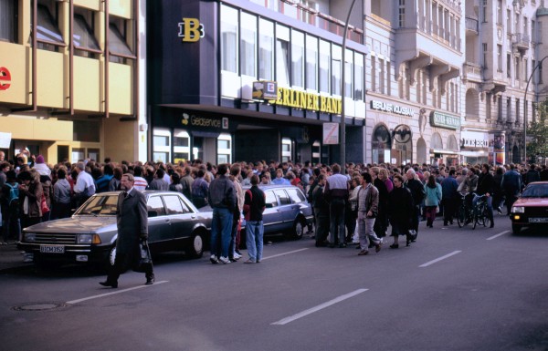 Badstraße mit der "Begrüßungsgeldschlage" vor Sparkasse und Berliner Bank