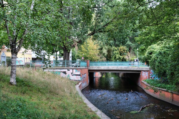 Blick nach Norden über die Panke zur Walter-Röber-Brücke (Wiesenstraße) |