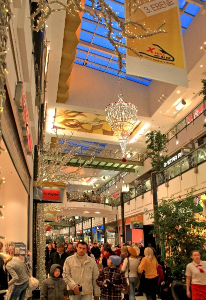 Weihnachtlich dekorierter Gang im Einkauszentrum Alexa