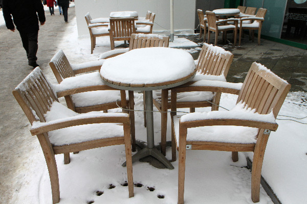 Caféstühle im Schnee