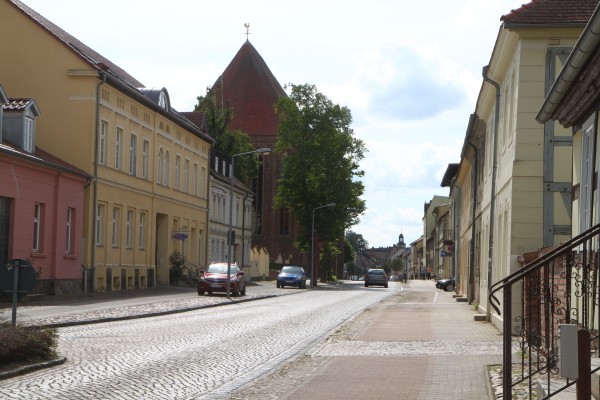 Blick durch die Klosterstraße vom Schwedter Tor nach Westen, in Bildmitte links die Klosterkirche