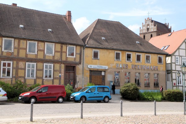 Westseites des Marktes am Hohen Steinweg mit Gaststätte Haus Uckermark (geschlossen), |