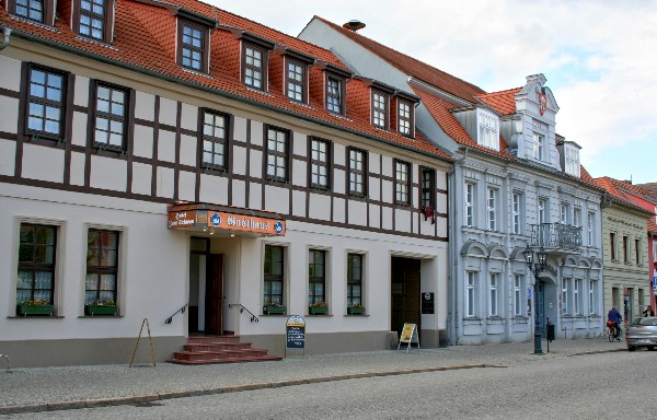 Hotel zum Schwan und das Rathaus von Beeskow am Markt (Berliner Straße). Link: Hotel zum Schwan