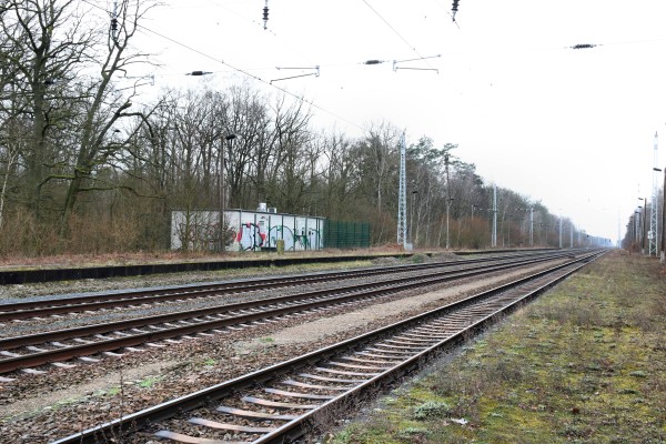 Blick über den Bahnaußenring nach Süden aus der Nähe der Nauener Chaussee. Gegenüber befand sich zu DDR-Zeiten der Bahnhof Falkenhagen.