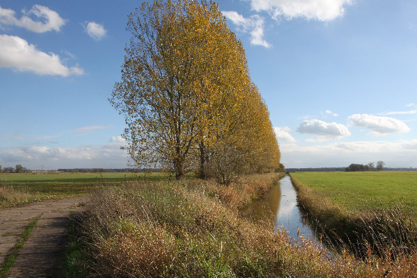 Graben in der Feldflur von Diedersdorf mit Baumreihe
