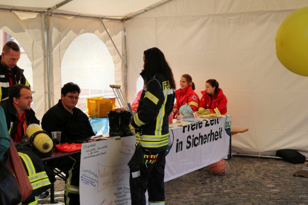Stand der Hilfsdienste - Feuerwehr und DLRG - auf dem Festplatz (Karl-Liebknecht-Platz)