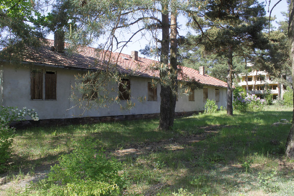 Wohnhäuser 48 - 58 im Süden den Olympischen Dorfes, Blick zum Plattenbau. Wurden von den Sowjets als Krankenstation genutzt.