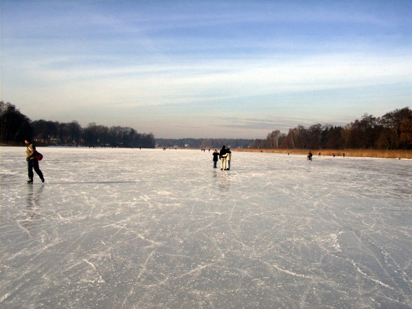 Blick von der Seemitte des zugefrorenen Falkenhagener Sees (Januar 2006) nach Westen