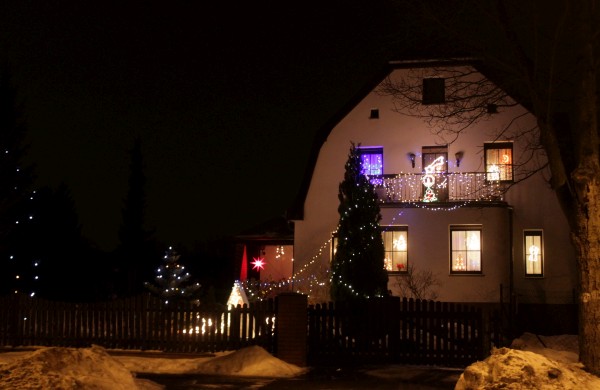 Haus mit Weihnachtsbeleuchtung in der Finkenkruger Straße