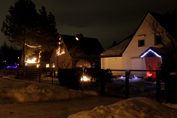 Häuser mit Weihnachtsbeleuchtung in der Spandauer Straße