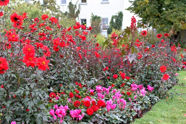 Rotes Blumenbeet beim Heckentheater der Landesgartenschau