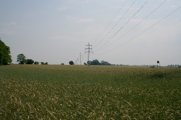 Blick über die Feldflur Dannenfeld mit Hochspannungsleitung