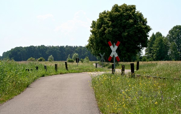 Der Weg nach Neustadt südlich von Wusterhausen am Bahnübergang