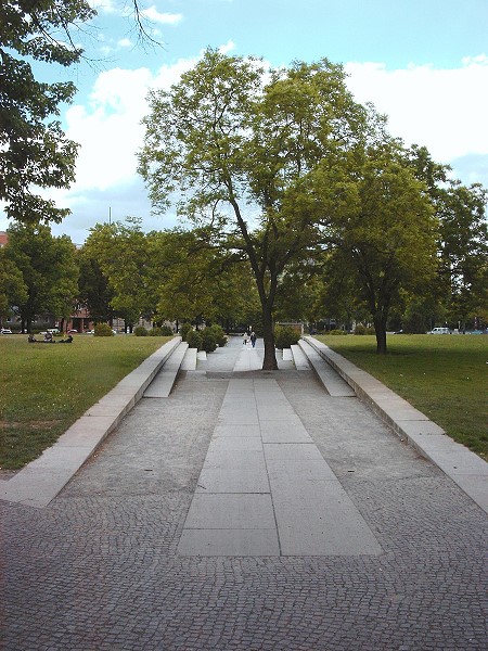 Diagonale Wegachse auf dem Platz der Einheit, Der Platz entstand bei Anlage der Neustadt 1722-24 durch Zuschüttung des Faulen Sees.