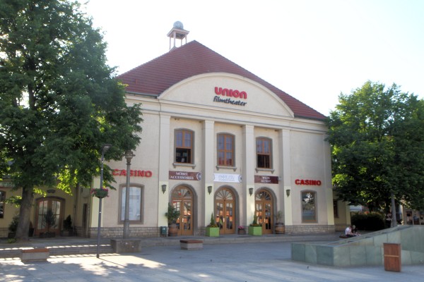 Union Filmtheater an der Friedrichstraße. Erbaut 1954-57 nach Entwürfen von F. Wollmann, W. Fuhrmann und K. Frauendorf. Von 1996-98 Leerstand, ab Ende 1998 wieder Kinonutzung im Obergeschoß