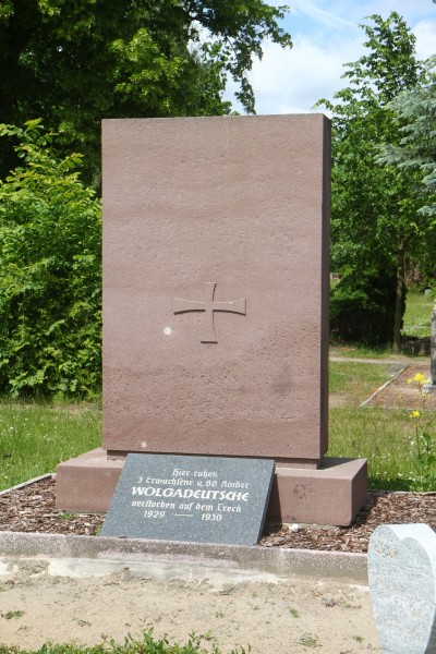 Gedenkstein für die Wolgadeutschen auf dem Städtischer Friedhof Inschrift: