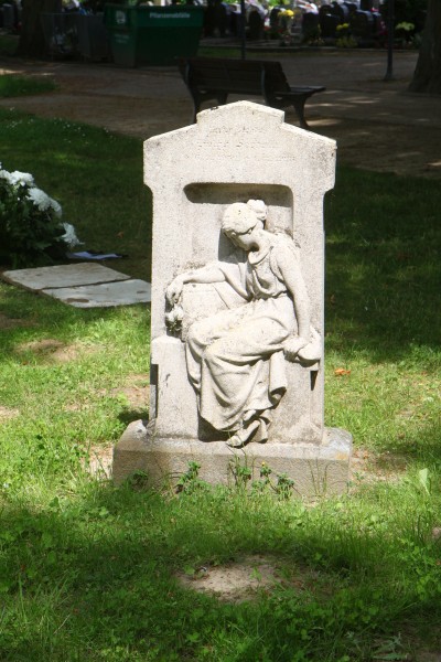 Grabstein mit Skulptur auf dem Friedhof an der Friedhofstraße Höhe Friedhofskapelle