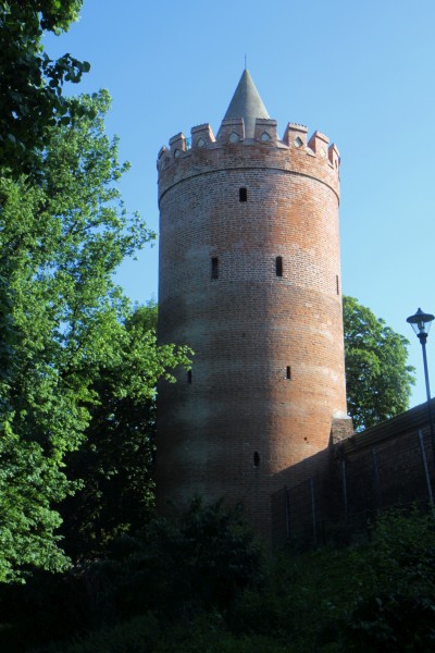 Hexenturm in der östlichen Stadtmauer. Er wurde 1494 nachräglich in die Stadtmauer eingefügt und ist 25 m hoch, er diente als Gefängnis auch im Zeitalter der Hexenprozesse