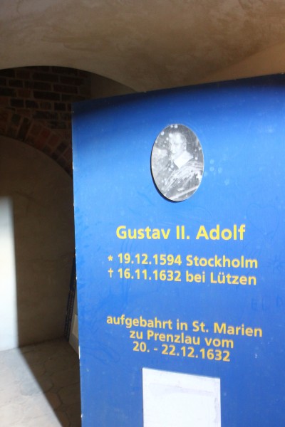 Tafel mit Daten zu Gustav II. Adolf im Nordturm der Marienkirche,