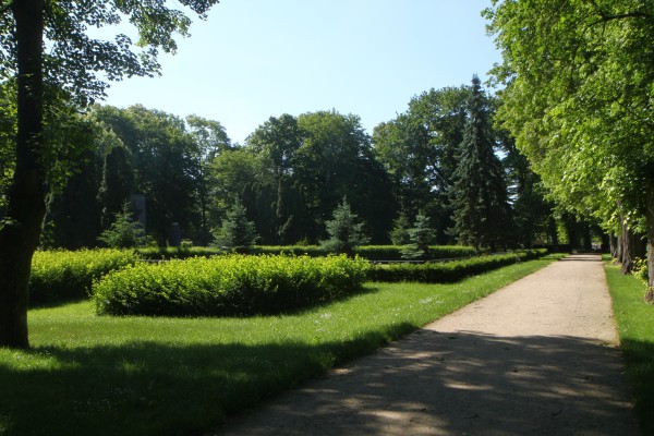 Stadtpark auf Höhe des Wasserturms, Blick nach Süden auf das Ehrenmal der Roten Armee |