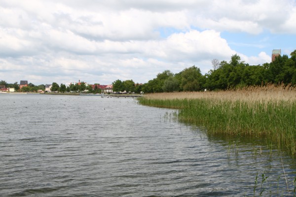 Blick vom Sonnendeck entlang des Schilfgürtels am Unteruckersee zu dessen Nordende