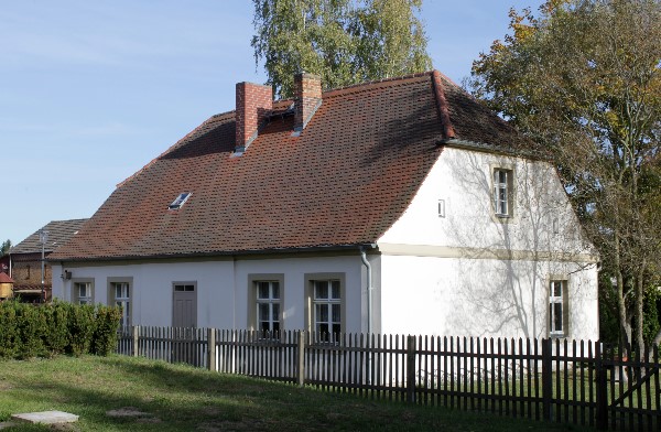 Blick vom Kirchhof auf das Schulhaus von 1773, das erste preußische Schulhaus