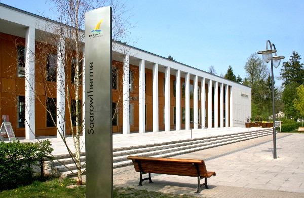 Die SaarowTherme in Bad Saarow-Pieskow, eröffnet 1998, Eingangsfront (Am Kurpark). |