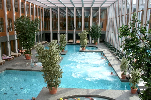 Die SaarowTherme in Bad Saarow-Pieskow, eröffnet 1998. Hallenbereich der Therme