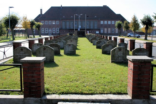 Blick über den Sowjetischen Ehrenfriedhof zum Bahnhof