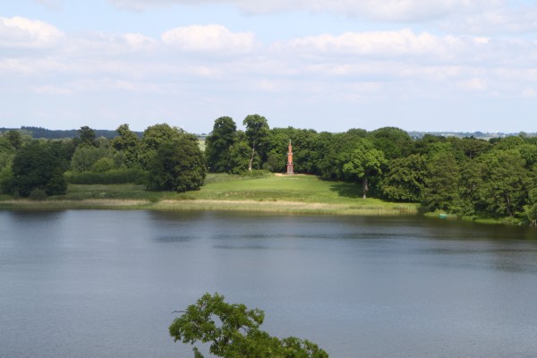 Blick vom Wartturm der Blankenburg über den Haussee zum Denkmal der Befreiungskriege |