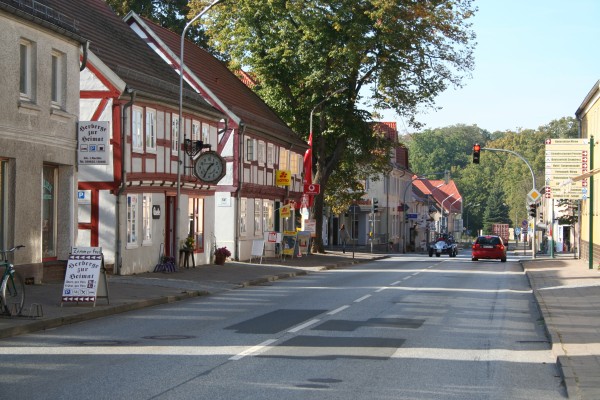 Blick durch die Strelitzer Straße nach Westen Richtung Schloßinsel