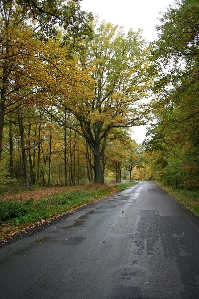 herbstliche Färbung der Bäume an der Straße nach Boek nördlich von Rechlin-Nord