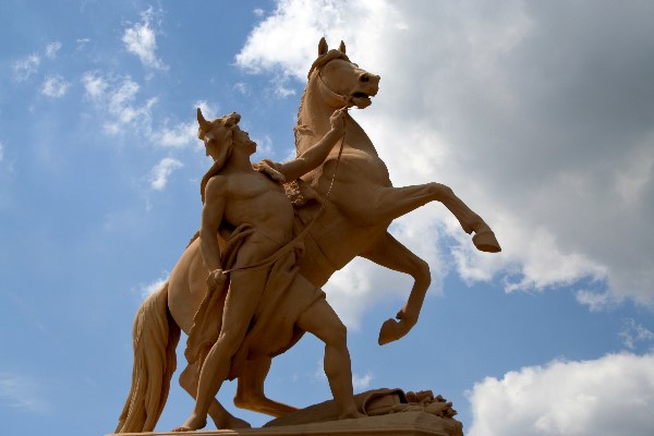 Skulptur Rossebändiger auf der Schloßbrücke. Obotrit, sein Pferd bändigend von Christian Genschow