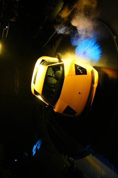 Der Lamborghini im Lamborghini-Pavillon an der Wand während der Show
