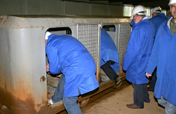 Einstieg in die Waggons der Lorenbahn im Bergbaumuseum Ramsbeck