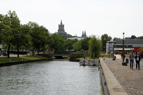 Blick von der Klappbrücke nach Süden über den Spoykanal im Bereich der Hochschule-Rhein-Waal |