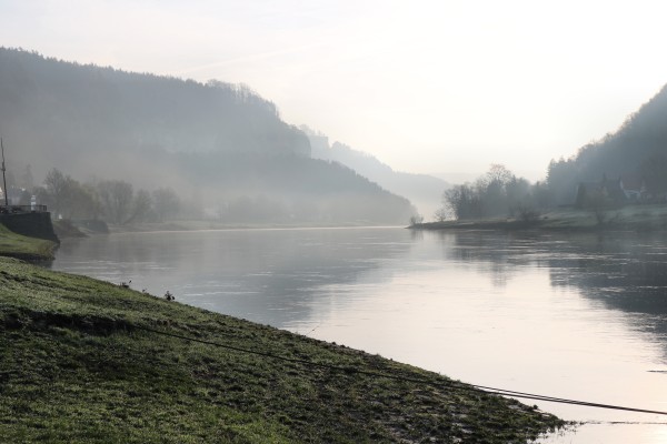 Kurpark Stadt Wehlen an der Mennickestraße beim Weg zum Start, links die Elbe mit der Elbfähre