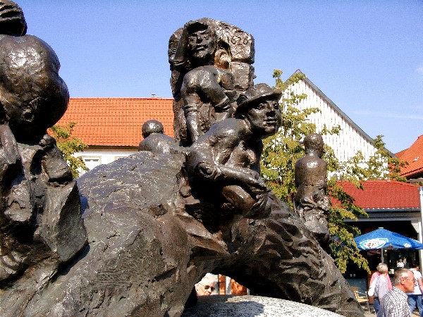 Figuren auf dem Lebensbaum. Im Zuge der Umgestaltung des Nikolaiplatzes ("Niko") 2002/03 wurde der Nikolaiplatzbrunnen (Kugel mit Lebensbaum) von Bernd Göbel geschaffen.
