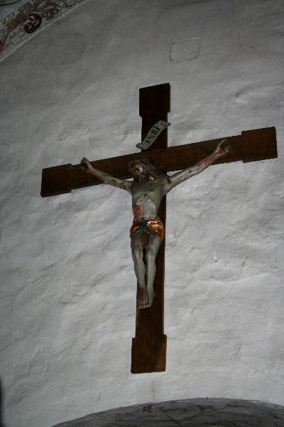 Triumphkreuz der St. Georg-Kirche oberhalb des Bogens zum Chorraum. Stammt aus dem 15. Jh., dessen Bemalung aus dem 16. Jh.