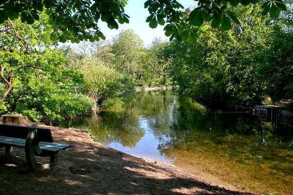 Blick über Schwentine auf die Einmündung der Postau (Mühlenau) (vorne links).