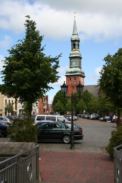 Blick über den Markt nach Norden zur St. Laurentius-Kirche